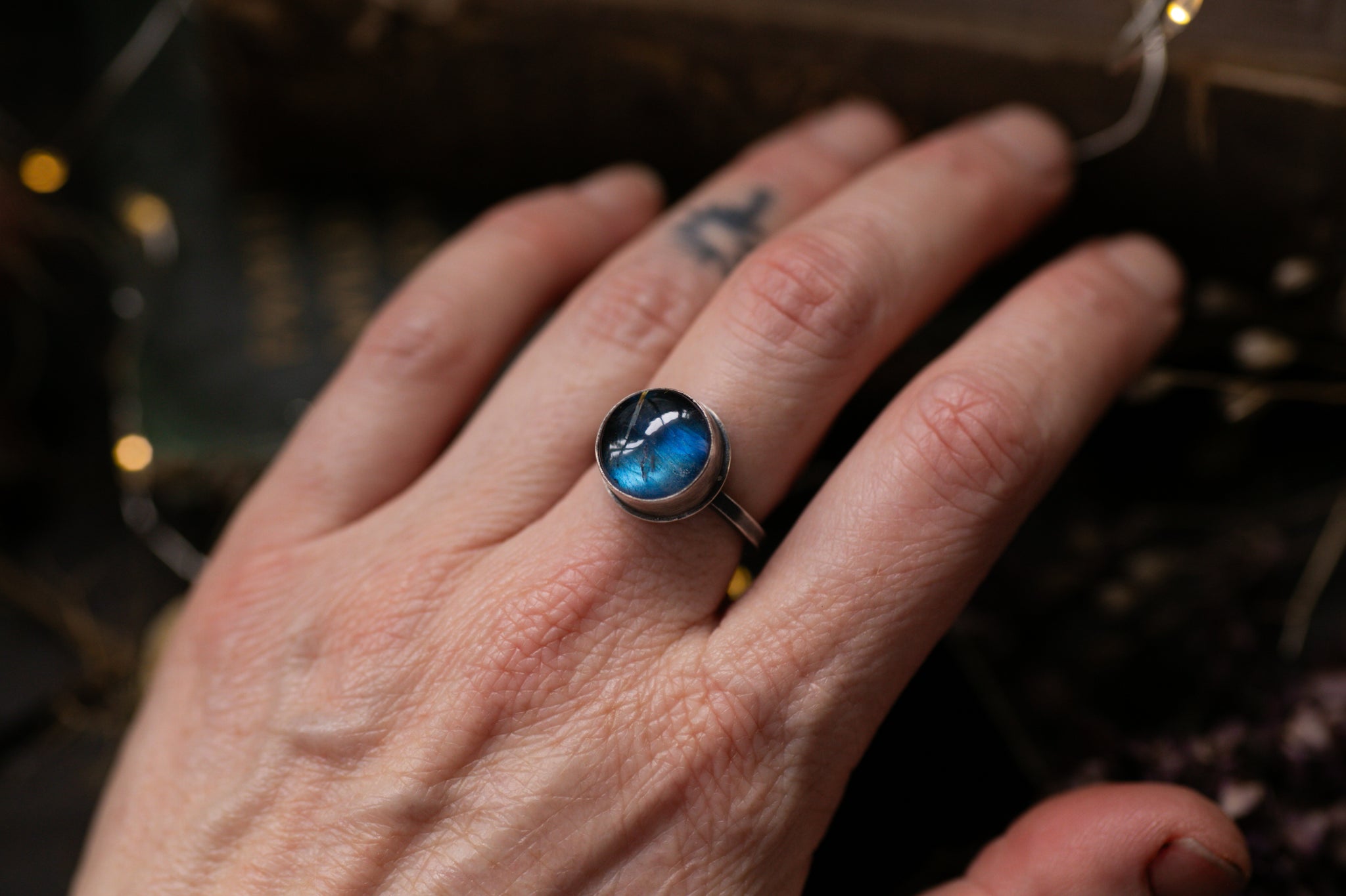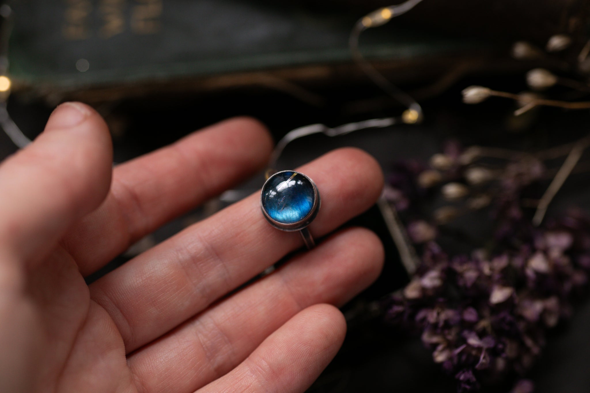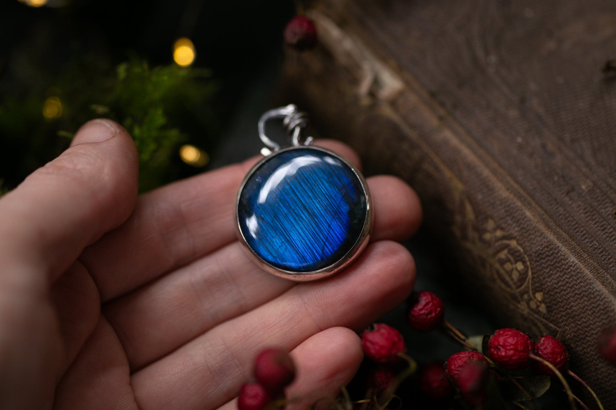 Labradorite Symbolism: Magic, transformation & protection This exceptional deep peacock feather blue Labradorite has been set...