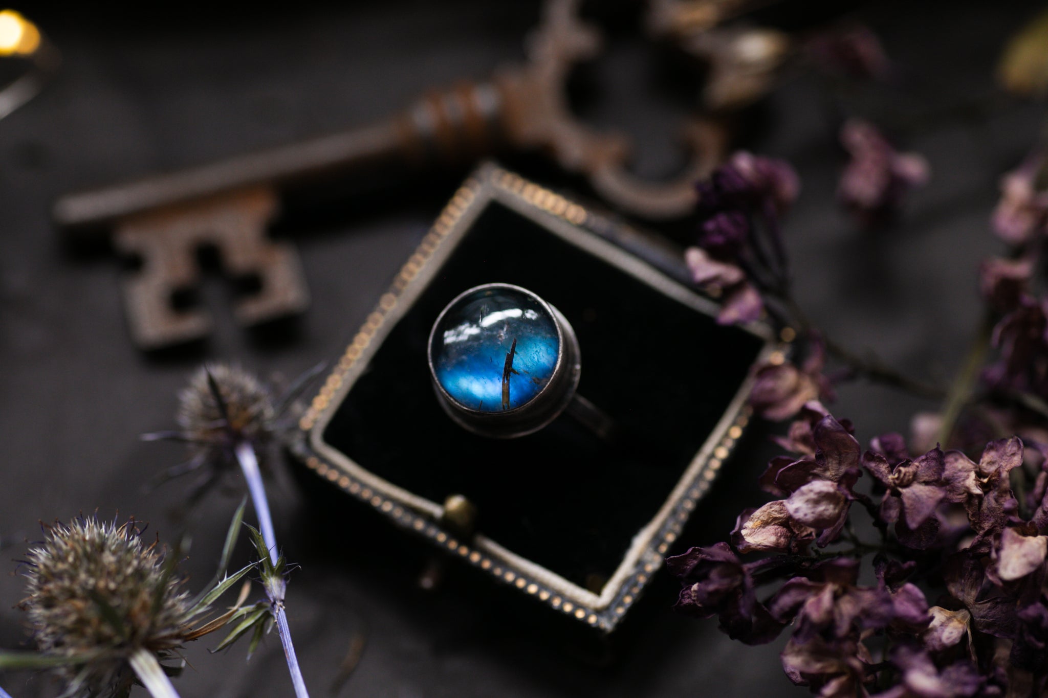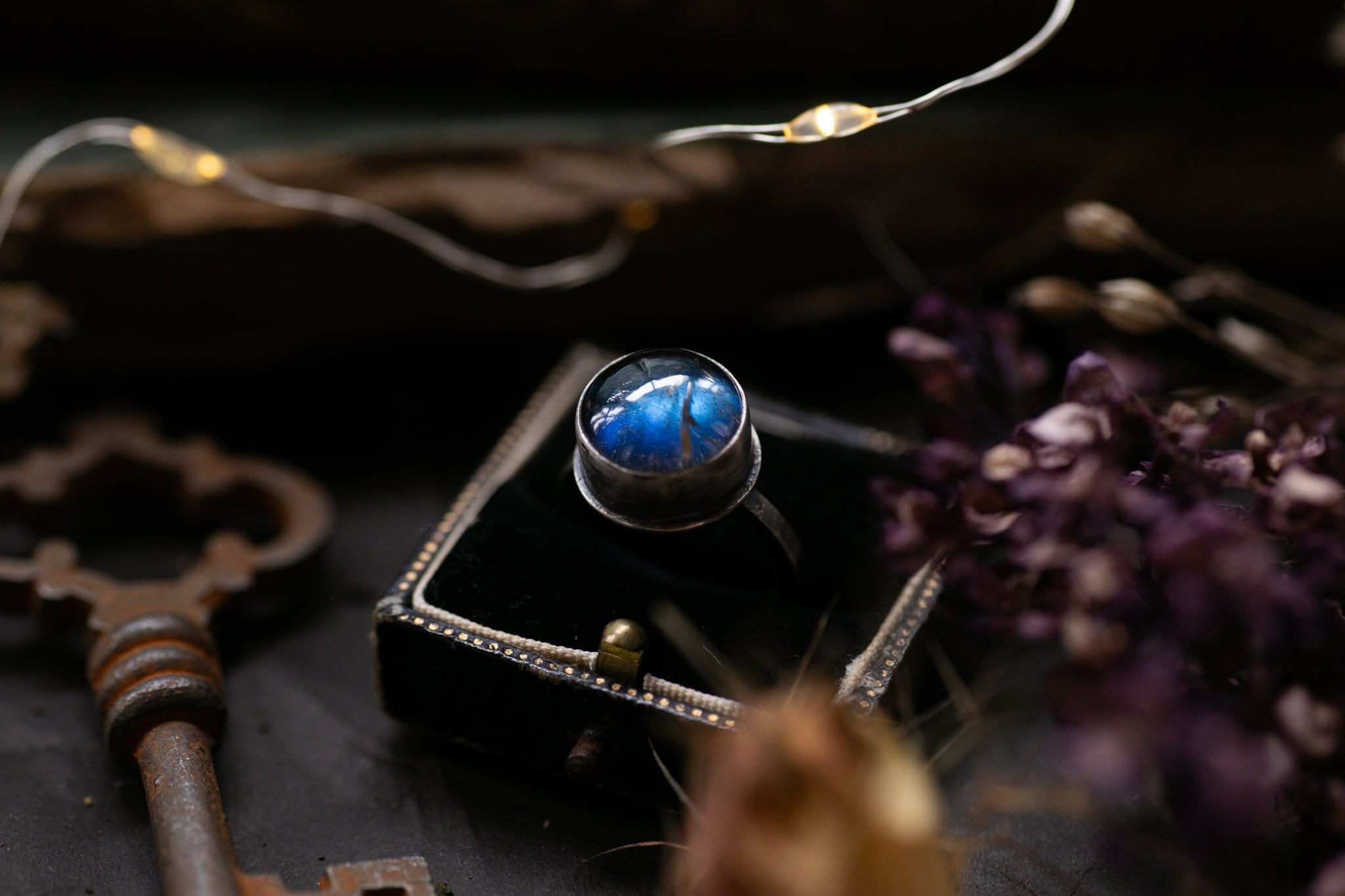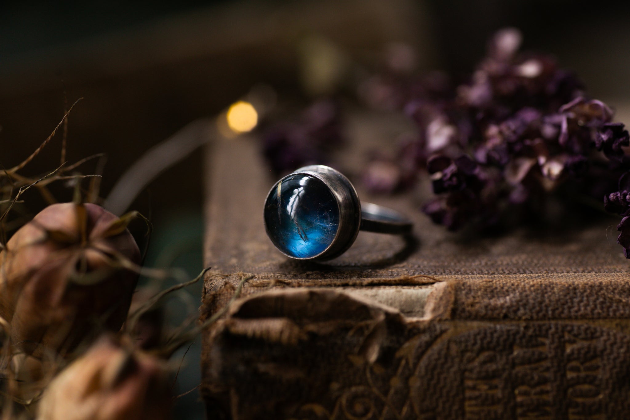 Labradorite Symbolism: Magic, transformation & protection This exceptional deep peacock feather blue Labradorite has been set...