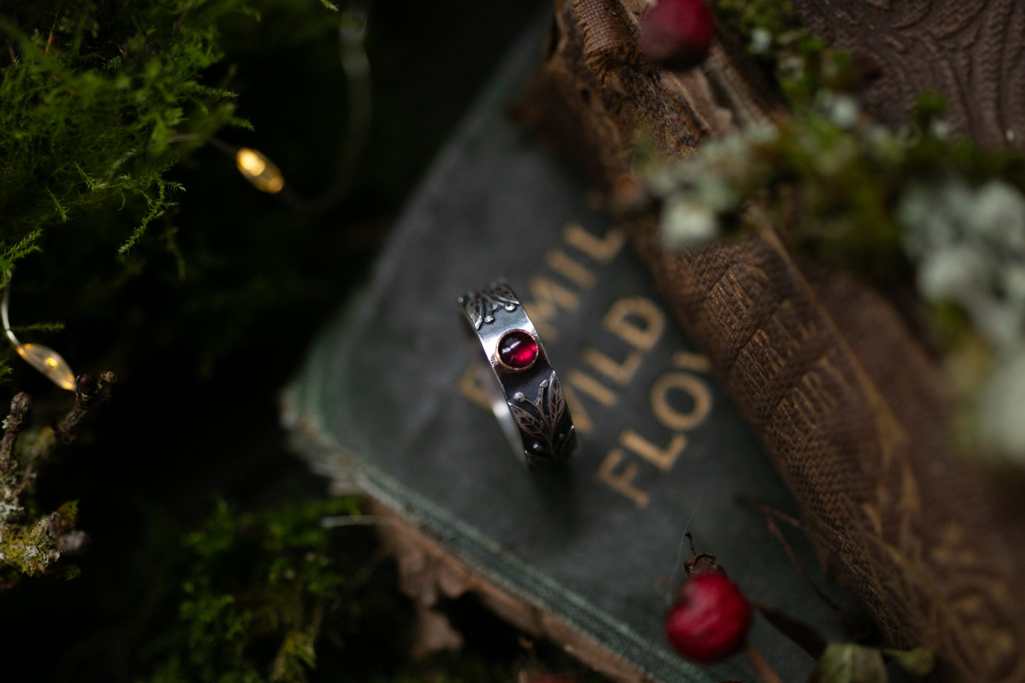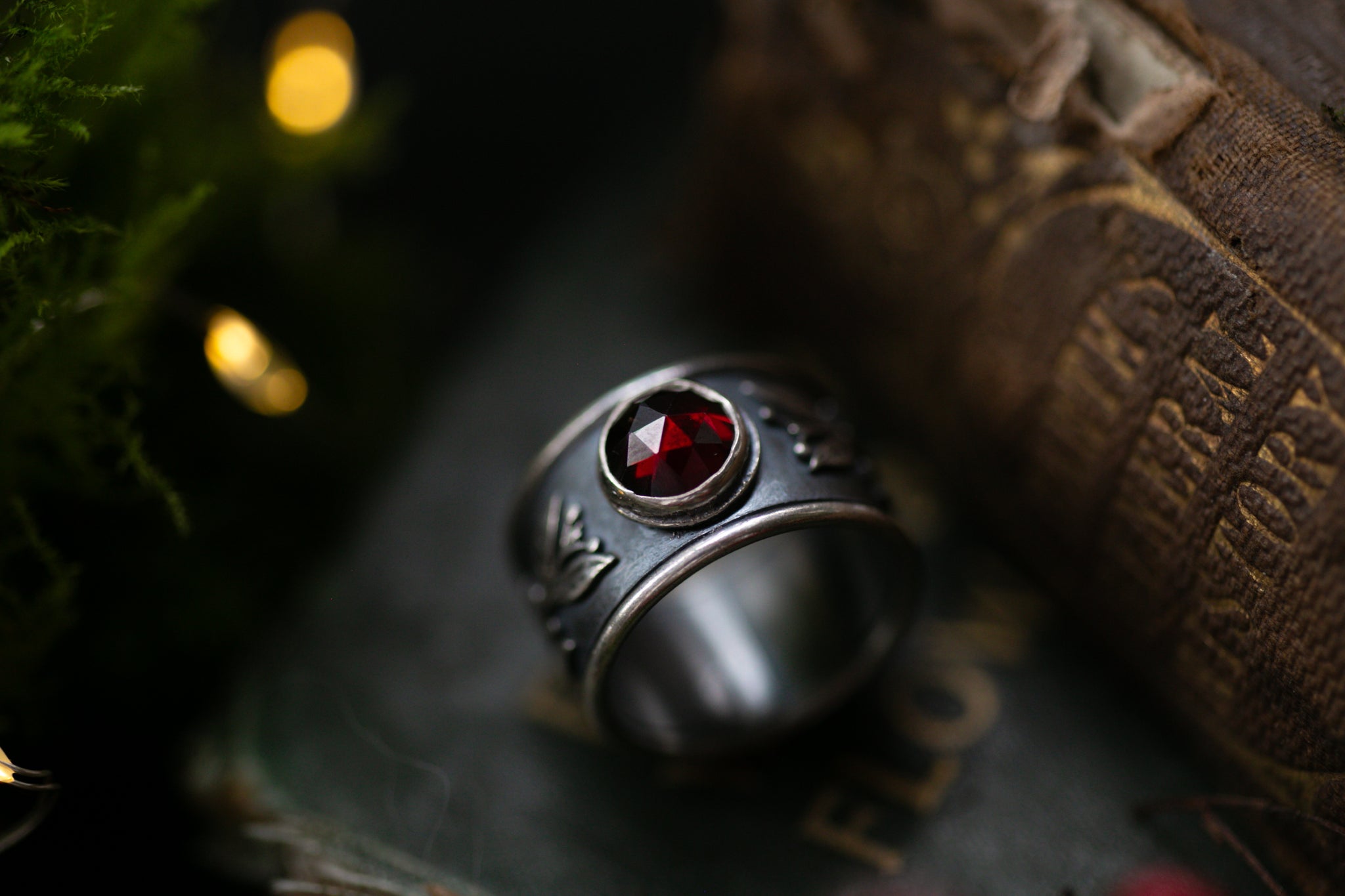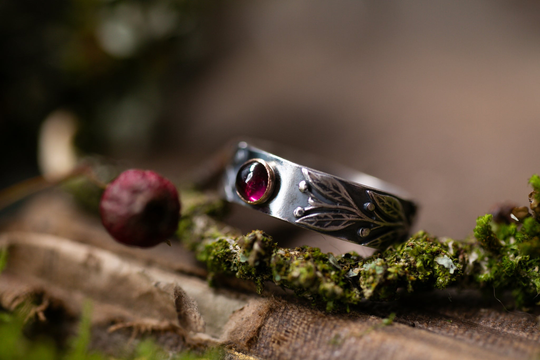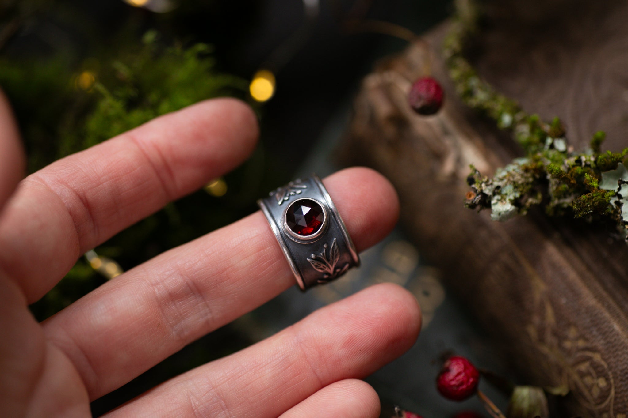 – Sold OutRhodolite garnet: Emotional wisdom & inspiration This ring features a gorgeous bright berry red garnet...