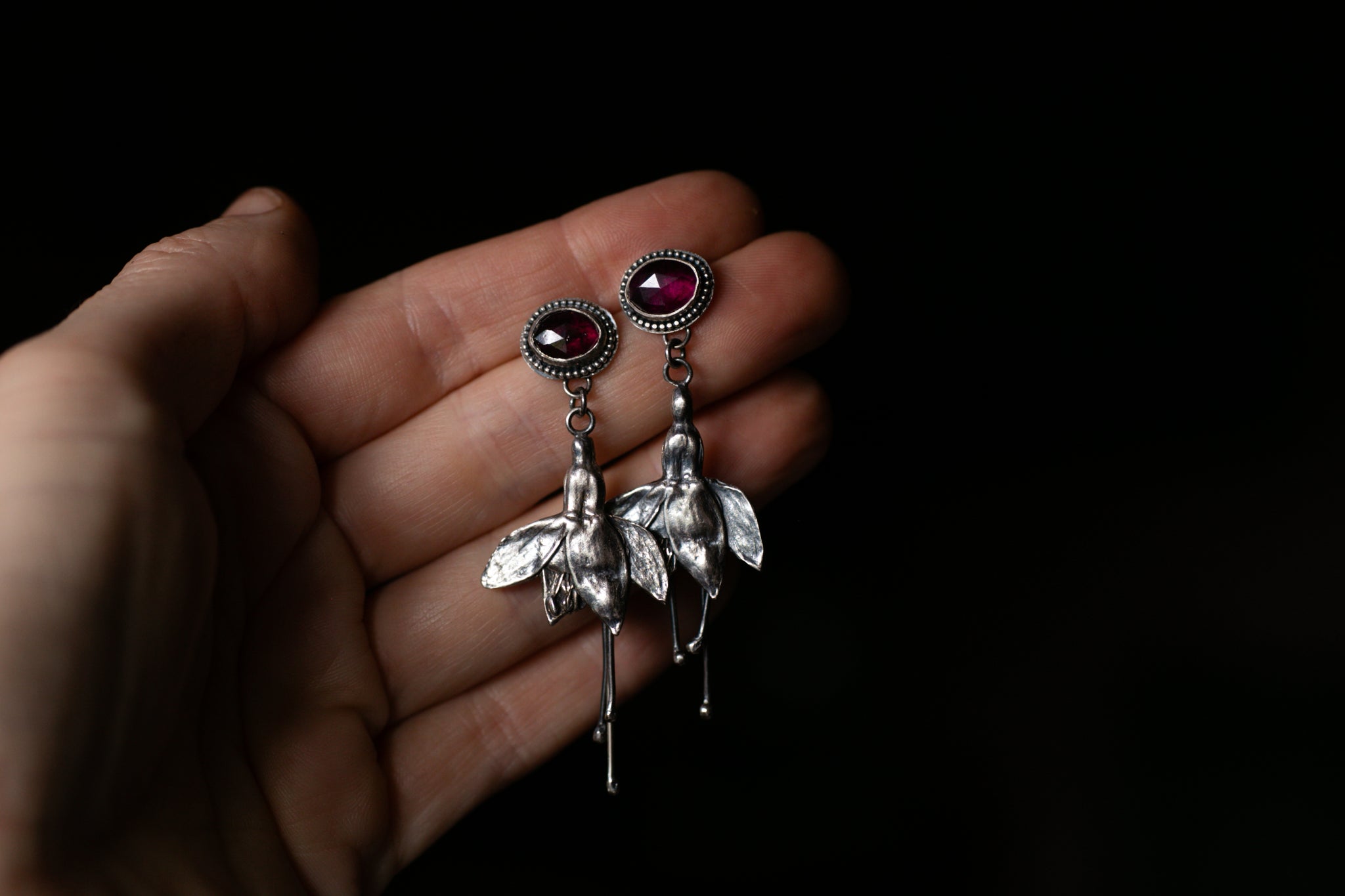 These little celestial inspired earrings feature the most gorgeous berry red Rhodolite garnet set in...