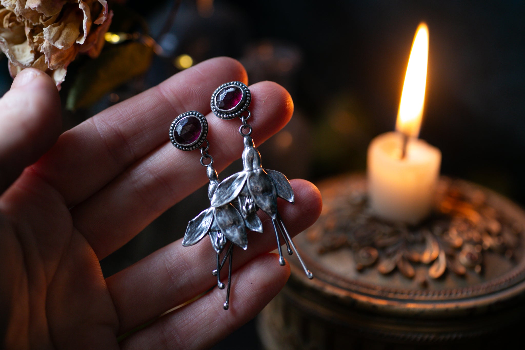 These little celestial inspired earrings feature lovely deep purple rosecuts set in sterling silver with...