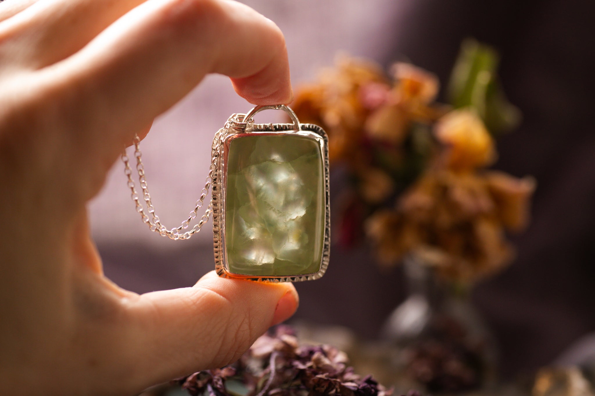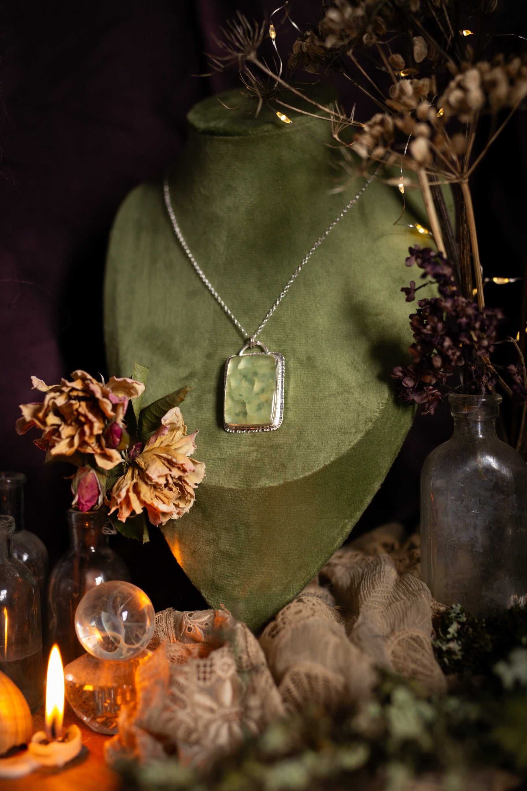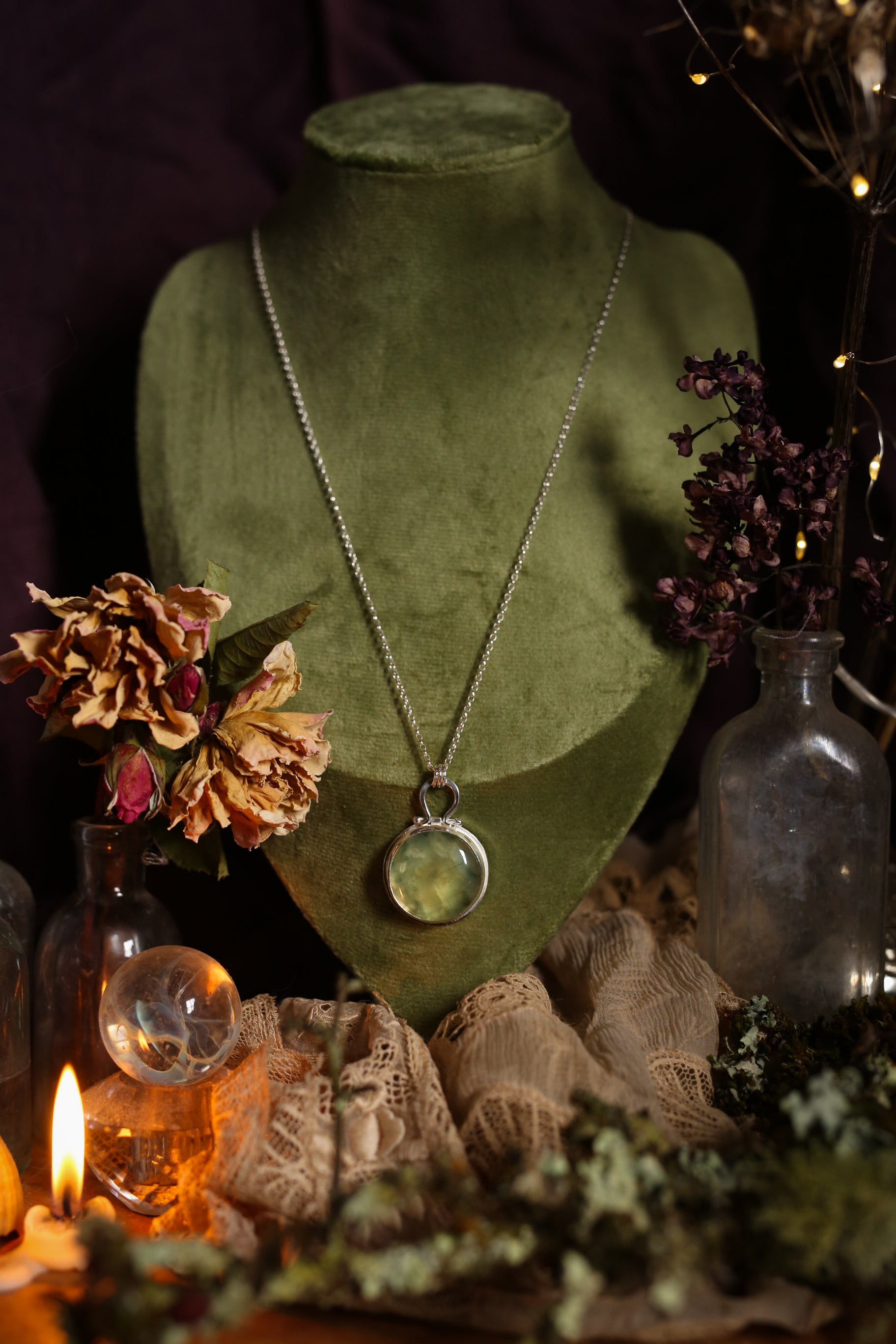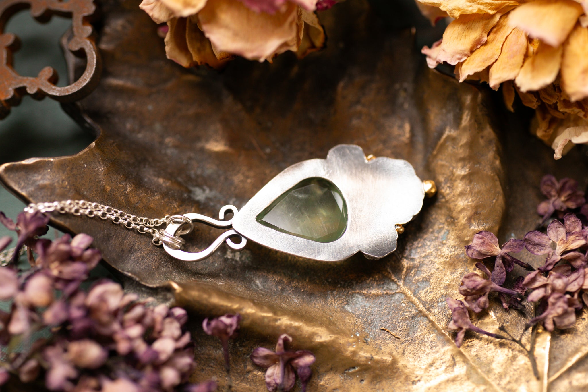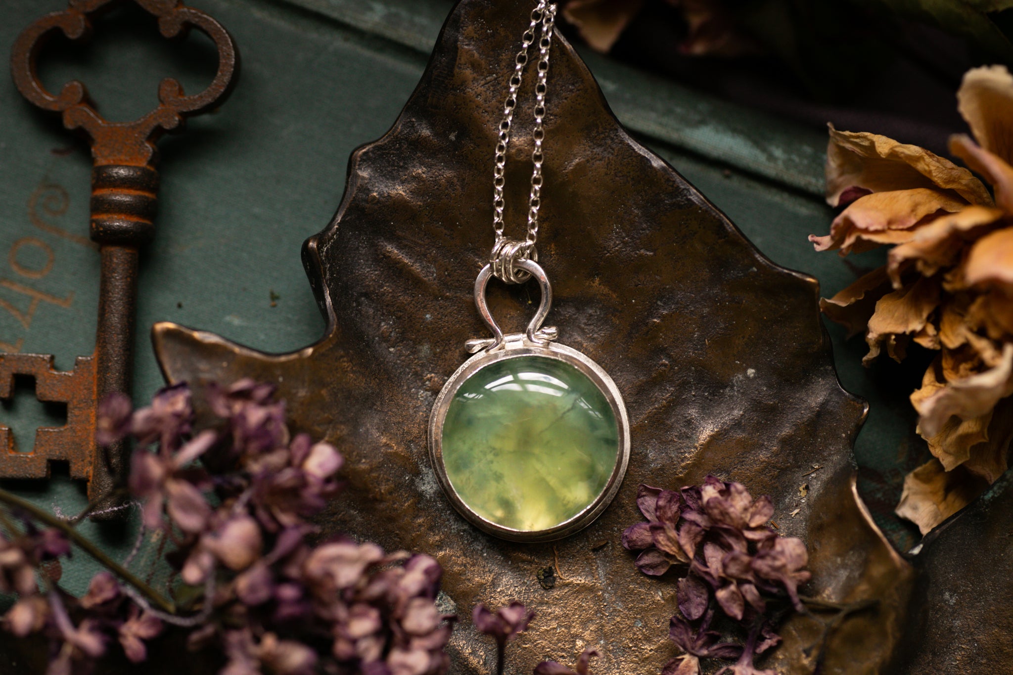 – Sold OutThis one of a kind pendant features a gorgeous big mossy green Prehnite set in...
