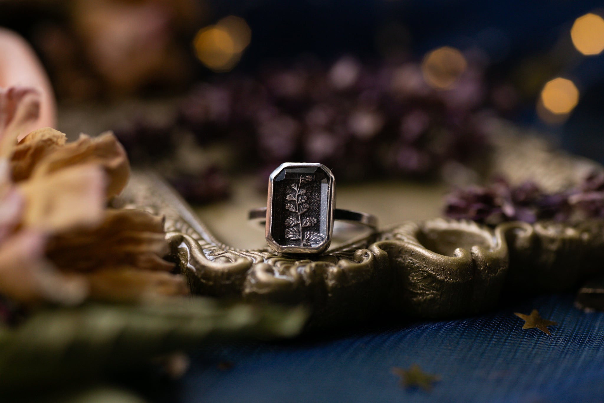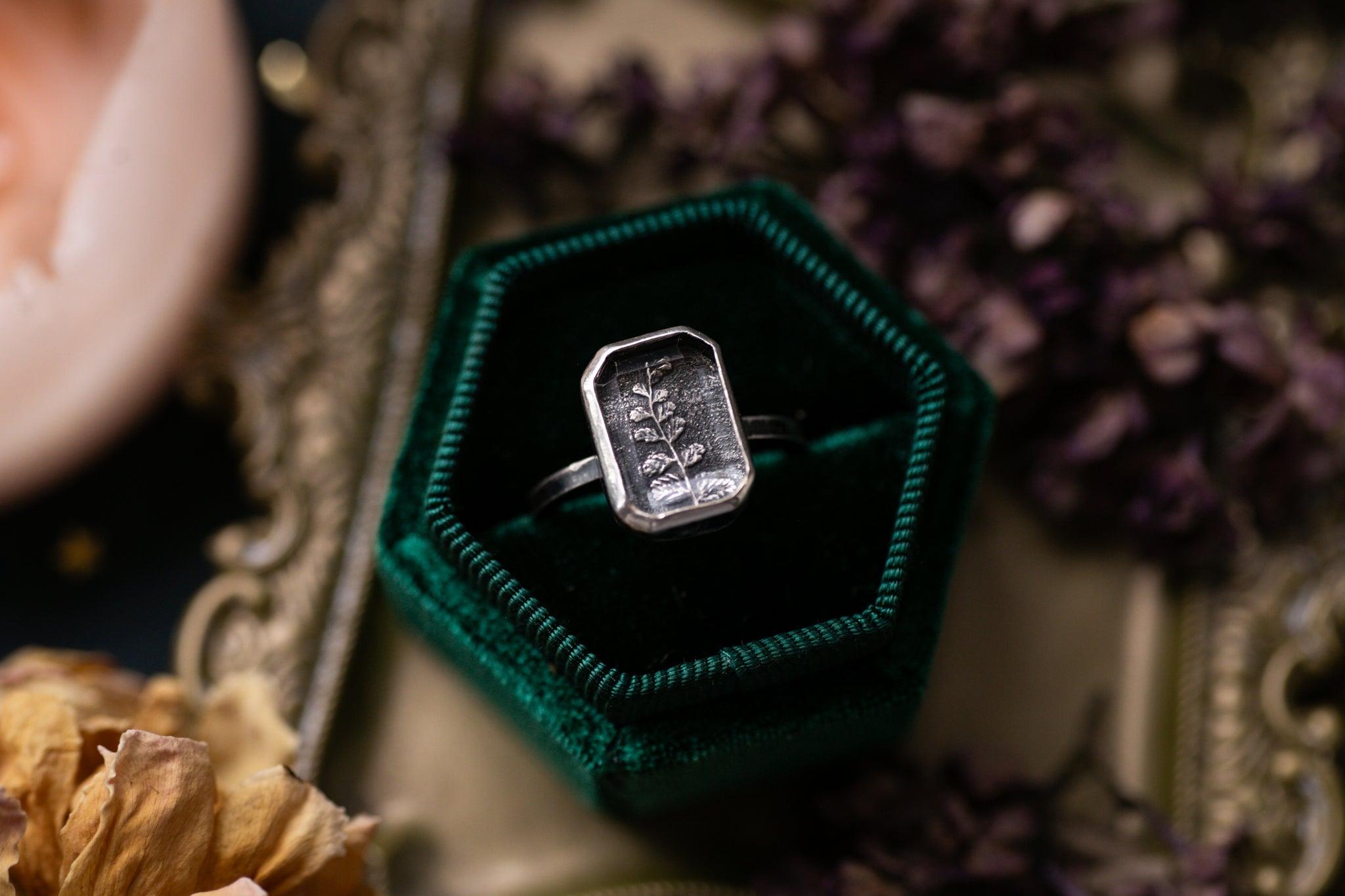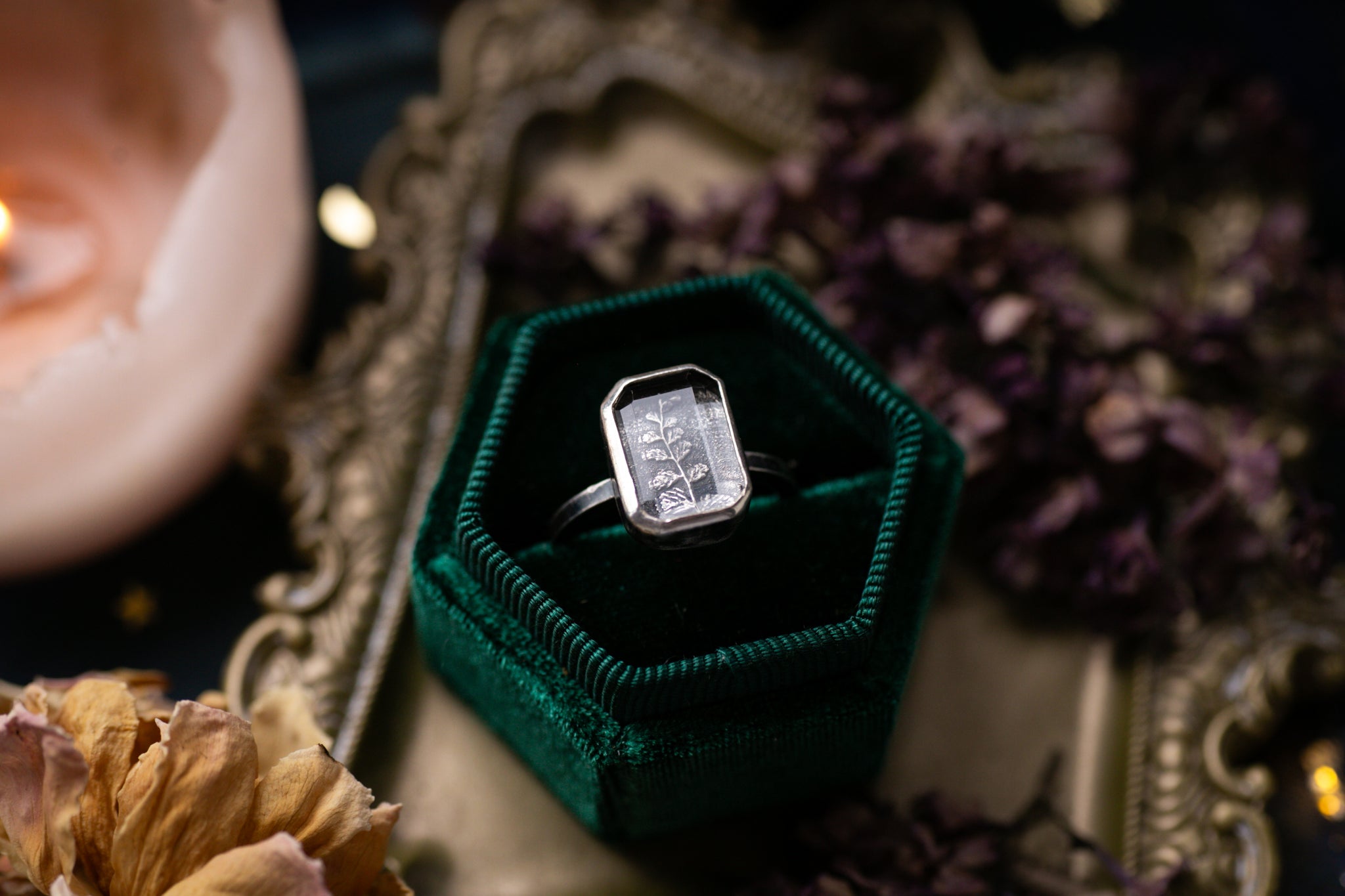 This ring features a cast of a real tiny fern encapsulated under a piece of...