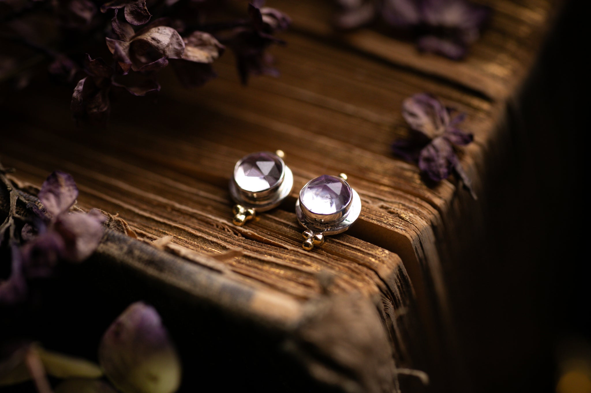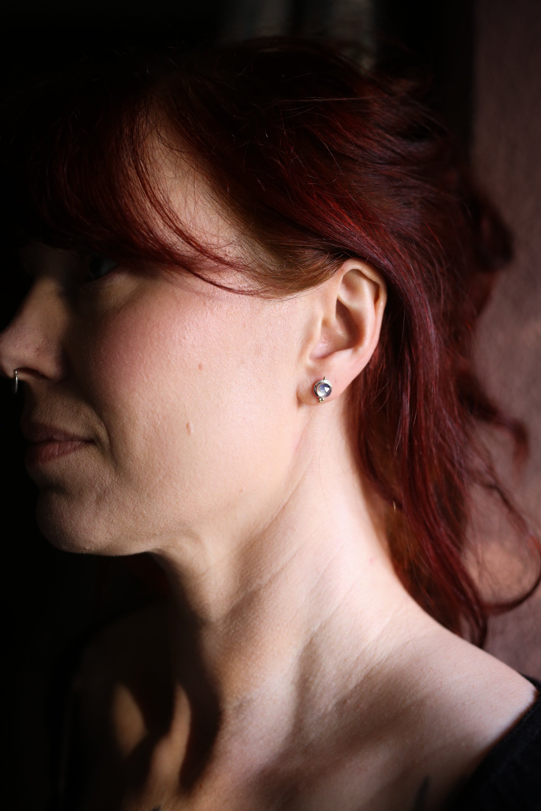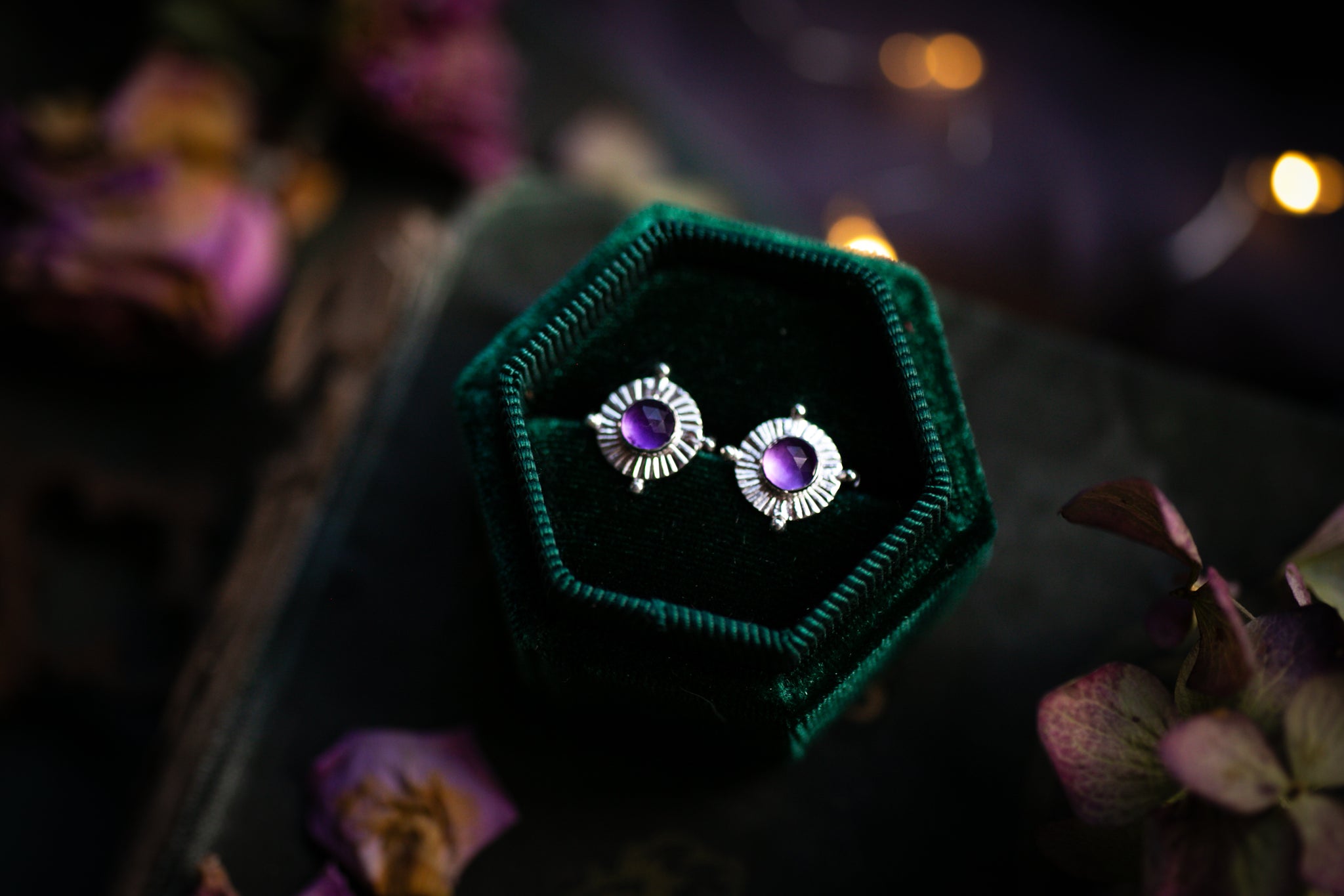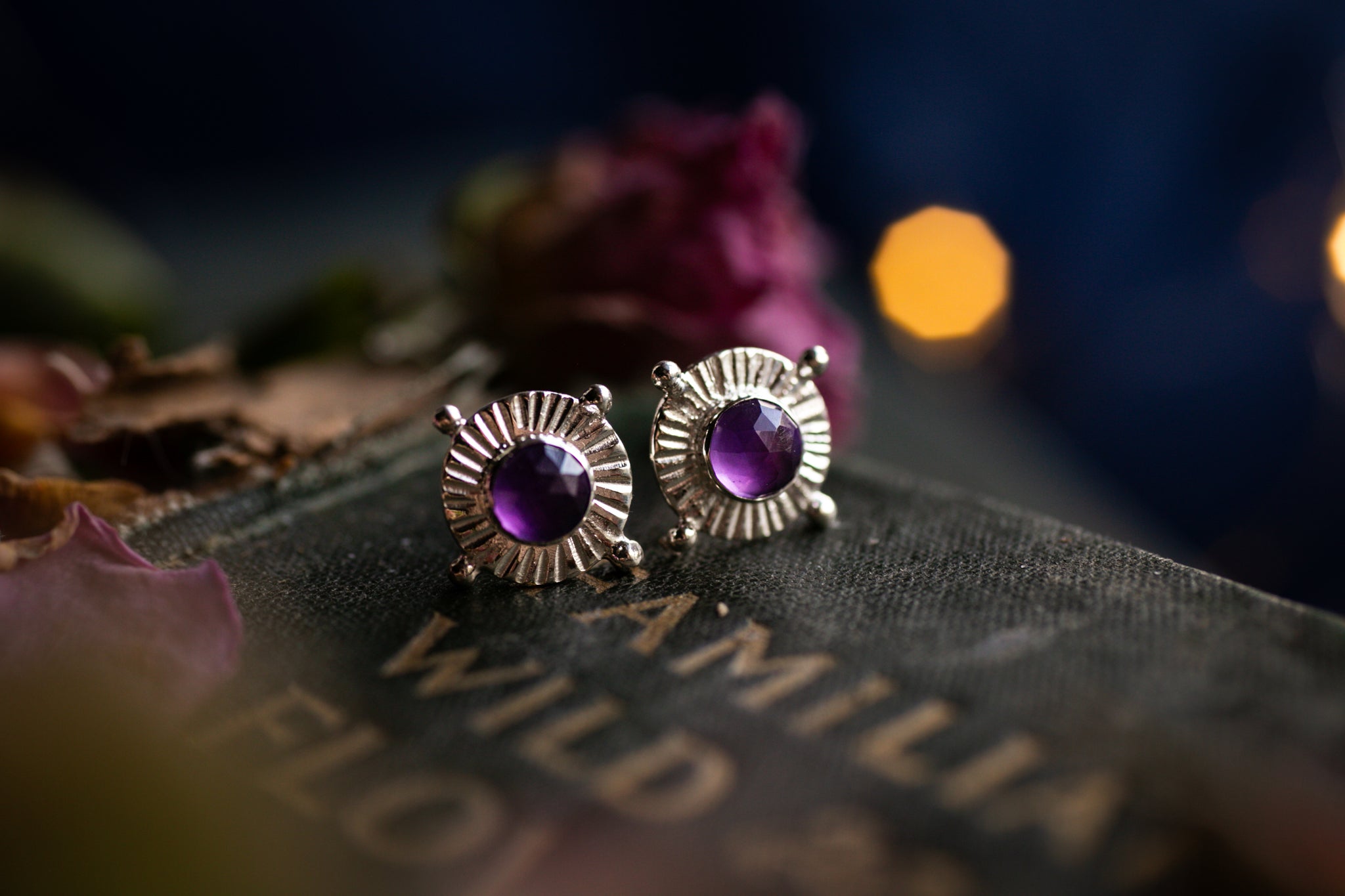 These little celestial inspired earrings feature lovely deep purple rosecuts set in sterling silver with...